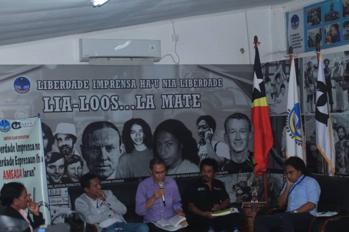 Díli -22/09/2023 (LABEH) – Konsellu Imprensa (KI) no Assosiasaun Jornalista Timor-Lorosa’e (AJTL) hala’o atividade editor clube discution ho tema “Liberdade Imprensa No Liberdade Espresaun Iha Ameasa Laran” Sexta Feira Foin Lalais Ne’e hala’o Iha Salaun Konselho Imprensa Kintal Bot Díli