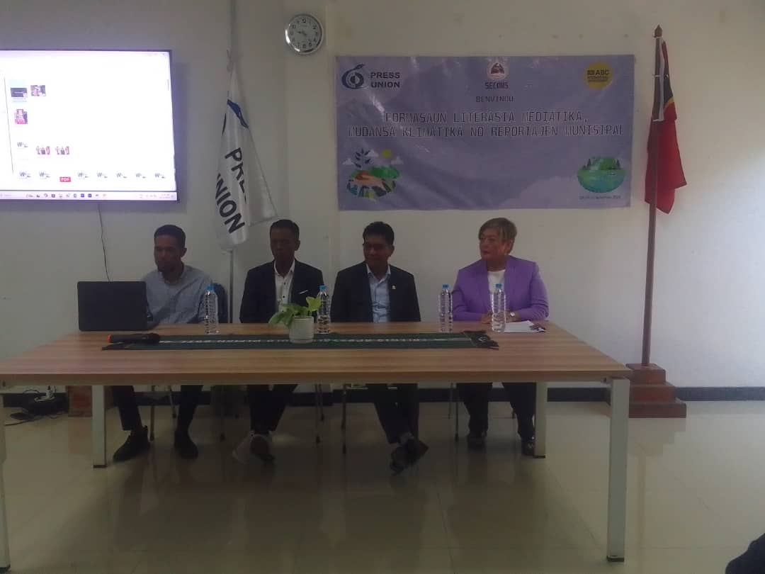 Iha fatin hanesan, Prezidente Timor-Leste Press Union Candido Alves hatutan, Sekretariu Estadu Komunikasuan Sosial servisu hamutuk ho TLPU atu  fasilita formasaun ho nia  tematika Literasia Mediátika ba iha Mudansa Klimatika ho  Reportajen Munsipal hanesan dalan ida atu hodi esplora liu tan koinesementu ba iha jornalista sira hodi halo  kobertura ba iha  asuntu mudansa klimátika ne’ebe maka akontese.