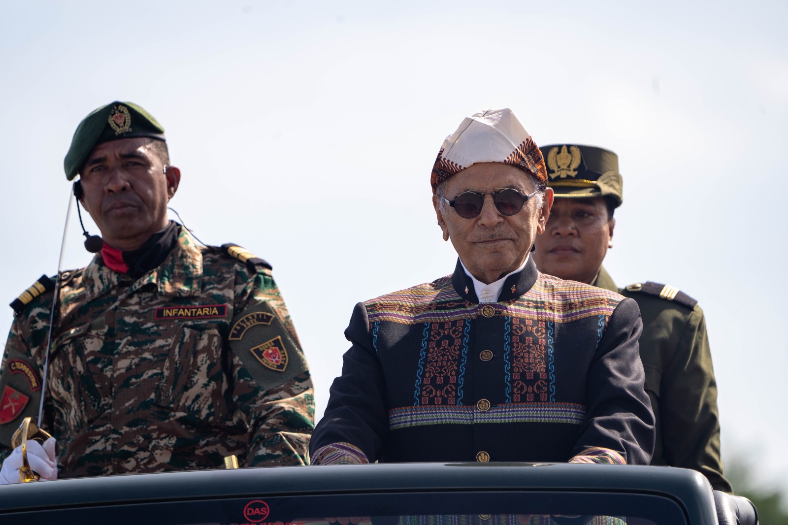 “Ohin, ita halo omanájen bá Eroi sira, sira hothotu ne’ebe fó sira nian vida bá ita, ohin iha Soberania. Sita mós haksolok ho konvidadu barak iha ne’e, hosi liur, konvidadu nasionál, konvidadu internasionál, no ha’u halo bemvíndu espesial ida bá señor ministru Ko-ordenadór Defeza, Seguransa Asuntus Polítikus Indonézia nian, nomós Jenerál Wiranto, sira hothotu, ne’ebé hosi nasaun viziña Indonézia mai hamutuk ho ita,”